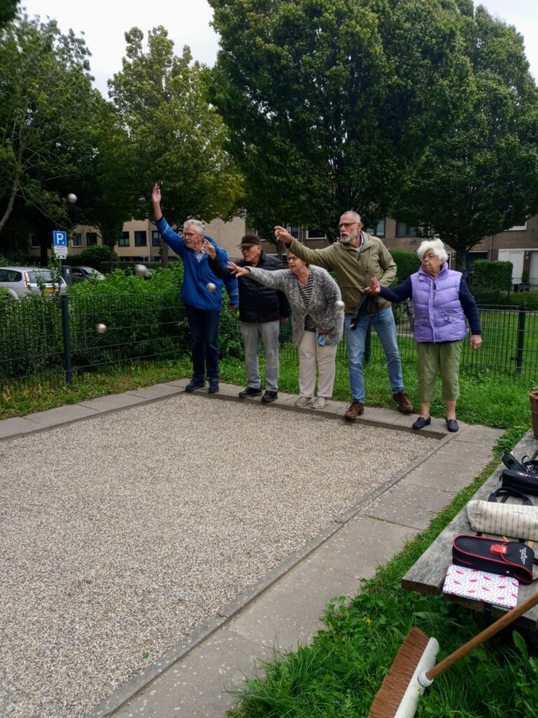 Tegenover ons Wijkcentrum ligt onze prachtige Jeu de Boulesbaan waar elke dinsdagmiddag om 14.00 uur gespeeld wordt. Door de ligging in de leuke speeltuin is de baan een echte ontmoetingsplek voor jong en ouder publiek/deelnemers en de baan voldoet aan de wedstrijdnormen.